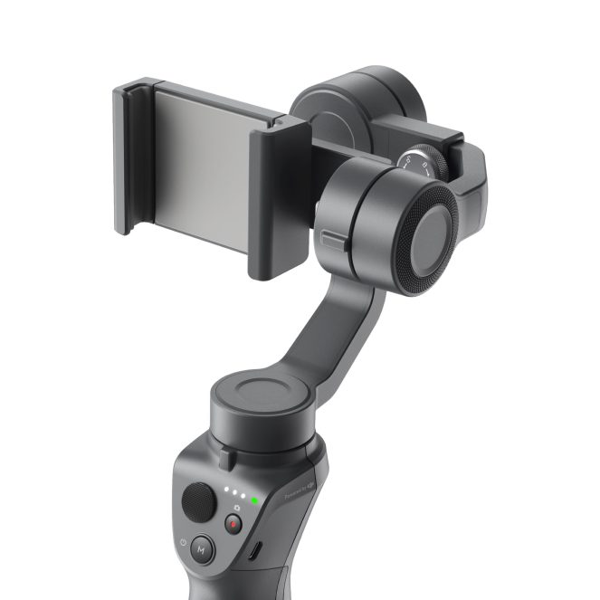 El rediseñado Osmo Mobile 2 convierte tu teléfono inteligente en una cámara perfectamente estabilizada. Ahora presenta una batería integrada con hasta 15 horas de duración, tres veces más que la batería de la anterior generación. También viene con un nuevo diseño del botón que debería facilitar el control y apuntar el teléfono mientras dispara. El nuevo Osmo Mobile 2 es notablemente más ligero que su predecesor y ahora también puede mantener el móvil en modo vertical.