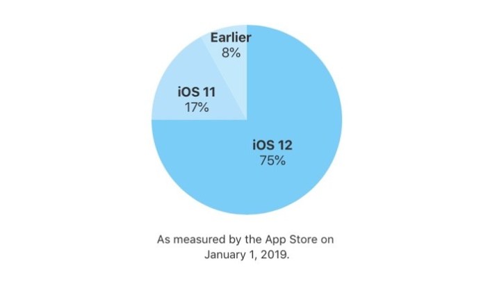 iOS 12 sigue avanzando a medida que nos acercamos a la siguiente WWDC, a la siguiente versión del sistema operativo móvil de Apple. Con datos tomados hasta el 1 de enero de 2019, Apple asegura en su página para desarrolladores que el 75% de los iPhone, iPad y iPod touch del mundo ya cuentan con iOS 12 o una versión posterior. El dato sube un poco más si nos limitamos a los productos lanzados en los últimos cuatro años. Y el dato sube mucho más si lo comparamos con iOS 11.